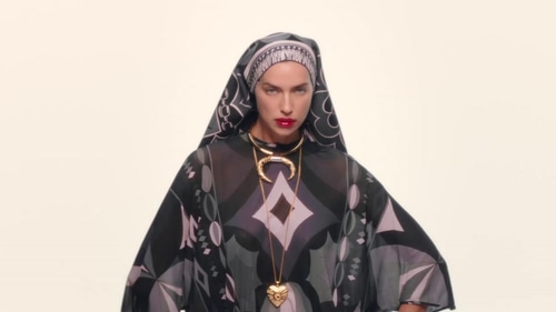 Starring Irina Shayk and directed by Columbine Goldsmith, the content series explores the endless ways Pucci’s scarves can transform, imagining bold new takes on famous ‘70s magazine covers.